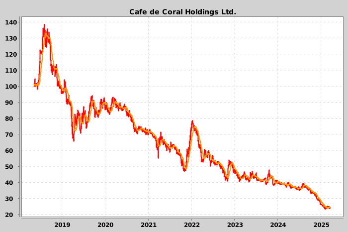 So, when will the bottom arrive? At some stage, I would think the more institutional franchises would adjust to the market conditions; and that brings my attention to the best baked port cutlet in town. It’s been a very tough grind for Cafe de Coral (0341.HK), which is now trading at around 15 percent of its all-time highs.
