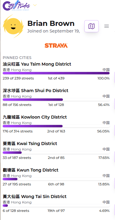 Lastly, changing topics, I just wanted to mention another milestone in that I became the 1st person to run all 239 streets in Yau Tsim Mong District. That includes various wetmarket alleys and freeway interchanges.