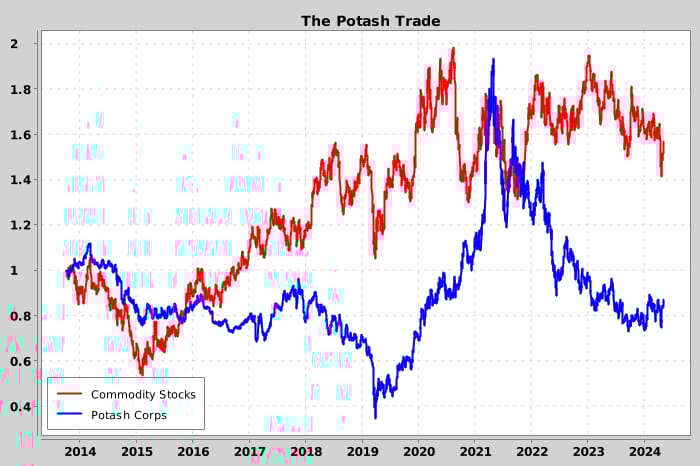 The major potash producers have lagged the commodity sector for the past decade, and with the prevailing trade war and ongoing currency debasement, potash appears to be a discounted approach to go long physical commodities.